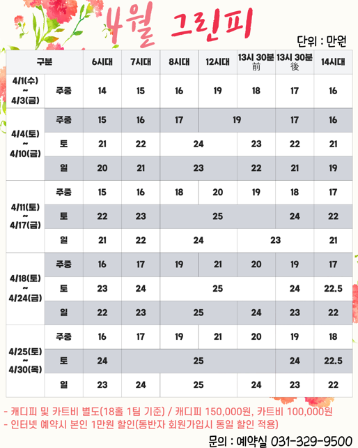 양지cc 4월 그린피 안내 | 양지